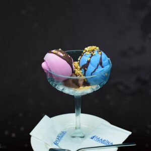 Dondurmalar Lezzet Düşü 180 ₺ Mavi Düş, Çikolata, Çilek Dondurma Muhteşem Beşli 240 ₺ Mavi Düş, Meyve Parçacıkları, Çikolata Dondurma Üç Top 180 ₺ Sade, Karadut, Çikolata Dondurma Meyve Cümbüşü 200 ₺ Limon, Çilek, Kavun, Karadut Dondurma 4*4 200 ₺ Sade, Fıstık, Çikolata, Vişne Dondurma Maraş Dövme Dondurma 200 ₺ Porsiyon olarak servis edilir. İsteğe göre farklı dondurma çeşitleri tercih edilebilir. Kağıt Helva 200 ₺ Top Dondurma 60 ₺